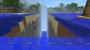 - Flowing water or lava can spread to the first adjacent block in an outside chunk, but the flow becomes suspended there until the outside chunk becomes active.